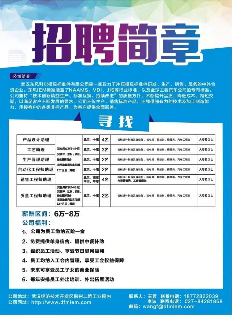 武漢東風(fēng)科爾模具標(biāo)準(zhǔn)件有限公司 2022年招聘信息
