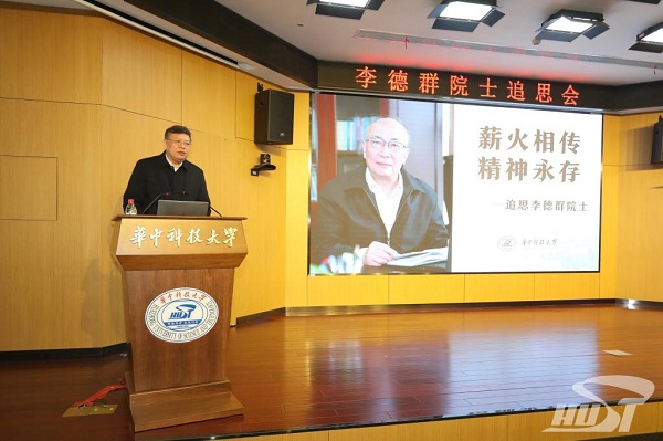 尤政校長致辭。他講到,李德群院士將畢生精力獻(xiàn)給了黨和國家的教育事業(yè),獻(xiàn)給了華中科技大學(xué)。我們永遠(yuǎn)緬懷和學(xué)習(xí)李院士敢為人先、追求卓越的創(chuàng)新精神,立德樹人、敬業(yè)奉獻(xiàn)的教育情懷,甘為人梯、不計名利的高尚師德,我們要以實際行動傳承李院士的精神,努力成長為像李院士一樣可堪大用、能擔(dān)重任的棟梁之才。