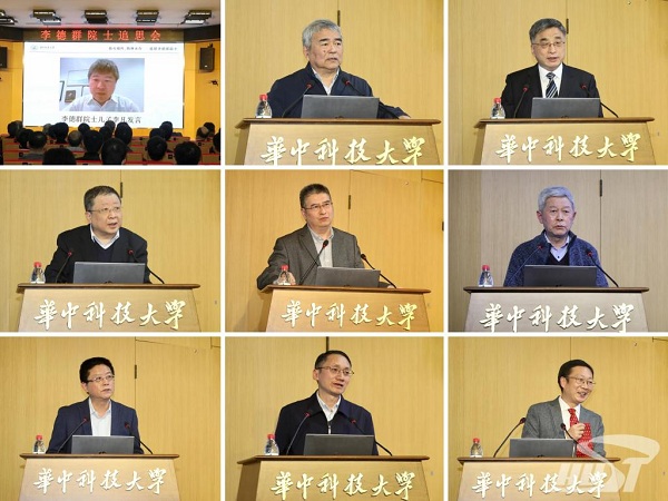 李德群院士兒子李凡先生,譚建榮院士、黃慶學(xué)院士、王國慶院士,我校機(jī)械學(xué)院陳學(xué)東教授,材料學(xué)院李志剛教授、李建軍教授、院長周華民教授、中國科學(xué)院廣州分院副院長馮偉研究員,分別代表家屬、友好、同鄉(xiāng)、同事、學(xué)生,深情回憶了與李院士的動人往事,講述了李院士無私奉獻(xiàn)、成果斐然的一生,贊揚了李院士赤誠報國、追求卓越、甘為人梯的崇高人格。