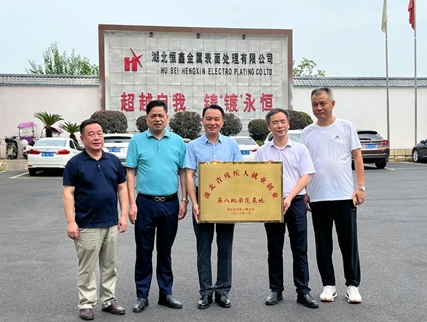 2023年8月8日上午,市殘聯(lián)黨組成員、副理事長李明釗,下陸區(qū)殘聯(lián)四級調(diào)研員、理事長舒仲春等領(lǐng)導(dǎo)來到湖北恒鑫金屬表面處理有限公司,為恒鑫公司榮獲“湖北省殘疾人就業(yè)創(chuàng)業(yè)第八批示范基地”授牌。市殘聯(lián)四級調(diào)研員鄒建國,市殘聯(lián)就業(yè)中心主任杜國勝等陪同授牌。