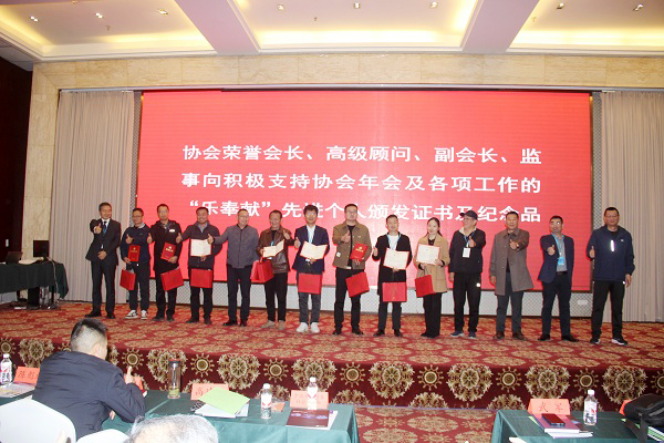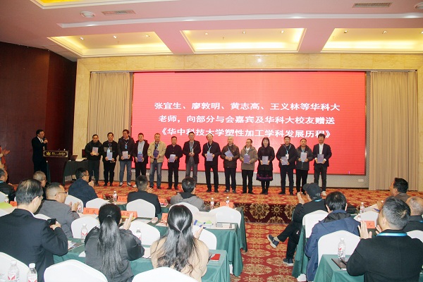 隨后,張宜生、廖敦明、黃志高、王義林等華科大老師,向部分與會嘉賓及華科大校友贈送了《華中科技大學塑性加工學科發(fā)展歷程》一書。協(xié)會榮譽會長、高級顧問、到會副會長及監(jiān)事,向積極支持協(xié)會年會及各項工作的“悅奉獻”先進集體代表和個人,頒發(fā)了榮譽證書及精美的“知書”紀念品。獲得2024年度“悅奉獻”的先進集體代表和個人包括:湖北日盛科技有限公司,牧野機床(中國)有限公司,昆山瑞鈞機械科技有限公司,湖北婺商高新技術產(chǎn)業(yè)園管理有限公司周飛,振業(yè)模具科技(天門)有限公司姜勇道,武漢百則精密機械有限公司劉利軍,湖北楠田工模具科技有限公司吳柳,湖北國安特殊鋼檢驗檢測有限公司成志敏,大冶市工模具鋼協(xié)會胡澤強、閔佰友。湖北模協(xié)也為積極贊助支持本次年會的10余家當?shù)仄髽I(yè),準備了同款證書及紀念品。