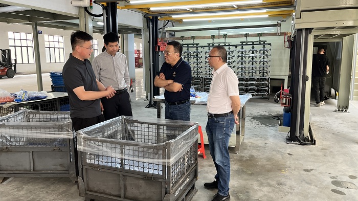 2025年4月11日上午,湖北省模具工業(yè)協(xié)會秘書處梁培志、趙顯蘭、中楚在線國際拍賣有限公司總經(jīng)理楊大恒,赴湖北長投金屬表面處理產(chǎn)業(yè)園參觀交流,了解產(chǎn)業(yè)園建設(shè)及發(fā)展情況。梁培志一行受到了湖北長投金屬表面處理產(chǎn)業(yè)園招商總經(jīng)理何紅根、楊恒及招商經(jīng)理楊云開先生的熱情接待。在大廳沙盤前,何總向大家介紹了項目總體情況和規(guī)劃。隨后,大家一起參觀了入園企業(yè)生產(chǎn)車間。