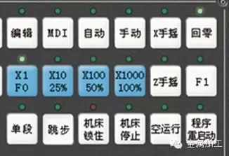 (1)如圖1所示,在G71程序段的前面加跳步指令,起動(dòng)機(jī)床時(shí),先讓操作面板上的跳步功能鍵無(wú)效,則“/”跳步指令相當(dāng)于空指令,機(jī)床執(zhí)行G71程序段對(duì)零件進(jìn)行粗加工成形。跳步功能鍵如圖2所示。