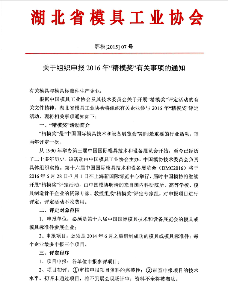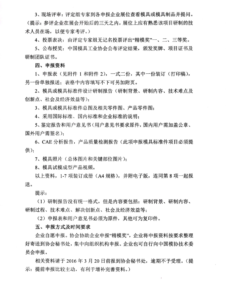 關(guān)于組織申報(bào)2016年“精模獎(jiǎng)”有關(guān)事項(xiàng)的通知