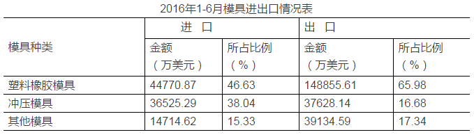 行業(yè)數(shù)據(jù)首發(fā)|2016年1-6月中國(guó)模具進(jìn)出口情況