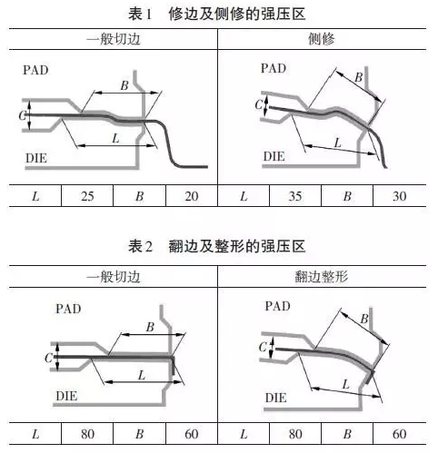 a.修邊強(qiáng)壓區(qū)20mm,側(cè)修可增大到30mm,如表1所示。