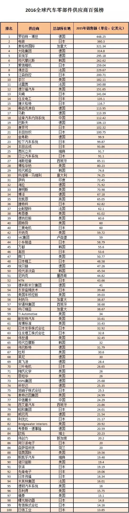 聚焦丨2016全球汽車(chē)零部件供應(yīng)商百?gòu)?qiáng)出爐 透露行業(yè)趨勢(shì)!