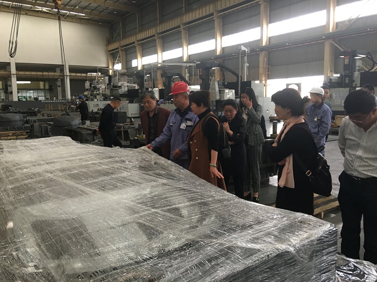 來到數(shù)碼模沖壓技術(shù)(武漢)有限公司,在婁先生和吳志強先生的帶領(lǐng)下,參觀了生產(chǎn)車間。走到一副被塑料薄膜包裹好的大型模具前面,婁師傅向大家介紹了該副模具的技術(shù)特點和亮點。