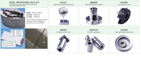 3.具有各類精密小齒﹑小槽﹑以及各類造型模具﹑光通訊模具等超精密零組件特殊加工能力;