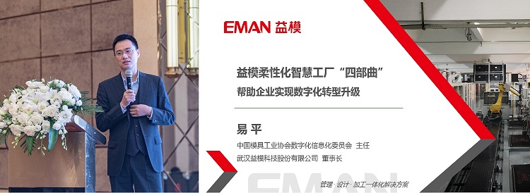 武漢益模科技股份有限公司董事長(zhǎng)易平博士(兼任中國(guó)模協(xié)數(shù)信委主任委員),作了《益模柔性化智慧工廠四部曲幫助企業(yè)實(shí)現(xiàn)數(shù)字化轉(zhuǎn)型升級(jí)》報(bào)告。易博士分析了世界模具國(guó)家能力排名并指出,中國(guó)模具行業(yè)目前在市場(chǎng)規(guī)模方面已經(jīng)達(dá)到了世界頂尖地位,但是在生產(chǎn)能力、產(chǎn)品質(zhì)量等綜合競(jìng)爭(zhēng)力上,與德國(guó)為代表的工業(yè)發(fā)達(dá)國(guó)家相比還存在一定差距,主要表現(xiàn)在國(guó)內(nèi)模具行業(yè)生產(chǎn)管控運(yùn)營(yíng)水平不足、國(guó)內(nèi)模具企業(yè)效率低效益差人才后備不足。針對(duì)這些痛點(diǎn),益模提出了并聯(lián)式的發(fā)展道路——柔性化智慧工廠發(fā)展路徑。在實(shí)現(xiàn)柔性化智慧工廠的道路上,益模結(jié)合十幾年的信息化經(jīng)驗(yàn)以及德國(guó)工業(yè)4.0、中國(guó)制造2025的指引,制定出了并聯(lián)式發(fā)展道路!整個(gè)過程可分為數(shù)字化透明工廠、自動(dòng)化高效工廠、精益化高效益工廠及基于工業(yè)互聯(lián)網(wǎng)/5G/AI等技術(shù)的未來工廠四部曲。