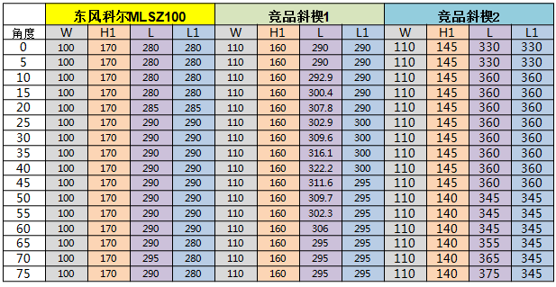 以安裝面寬度100mm為例,斜楔體積均小于其他競(jìng)品斜楔。