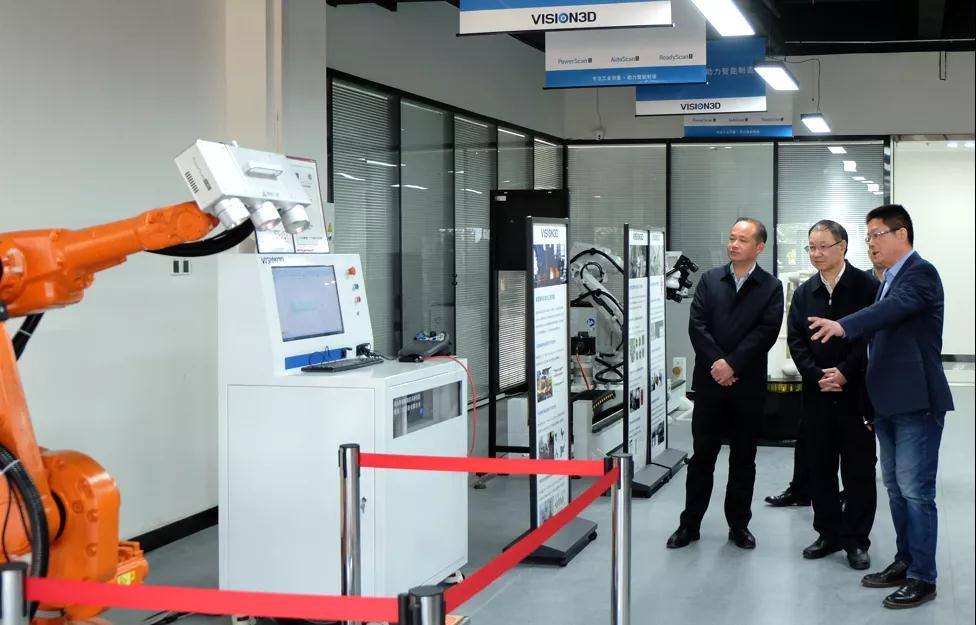 在參觀過程中,應(yīng)勇書記還詳細詢問了我司生產(chǎn)經(jīng)營情況,對自動化三維測量設(shè)備在制造企業(yè)中的應(yīng)用推廣表示關(guān)心。目前,研制的PowerScan系列、AutoScan系列、ReadyScan系列三維測量設(shè)備已應(yīng)用于全球知名的汽車前橋、轉(zhuǎn)向節(jié)、曲軸等和航空發(fā)動機葉片、導(dǎo)熱內(nèi)環(huán)、齒輪等關(guān)鍵部件生產(chǎn)企業(yè)中,為我國汽車制造、航空航天、軌道交通、軍工制造等重點領(lǐng)域推波助瀾,提升了制造業(yè)的國際競爭力,是我國在上述領(lǐng)域工業(yè)三維測量技術(shù)的國產(chǎn)化替代承擔者,市場發(fā)展前景廣闊。